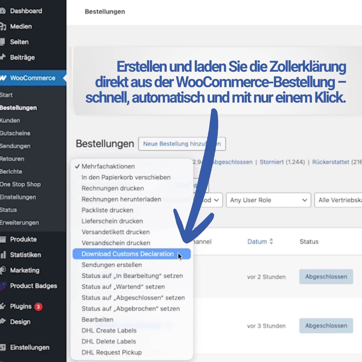 Beim Versand in Nicht-EU-Länder sind korrekte und vollständige Zollinformationen entscheidend. Dieses Plugin generiert die benötigten Dokumente direkt aus Ihren Bestell- und Produktdaten – ohne manuelle Eingaben und ohne zusätzliche Tools.